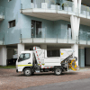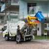 At the rear end, the system for gripping, lifting and emptying the bins (option) is installed in a central position and can be equipped with a load assist system.