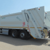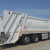 En la parte trasera del equipo, en la compuerta abatible, se ha instalado el sistema de toma, elevación y vaciado de los contenedores de basura (opcional).